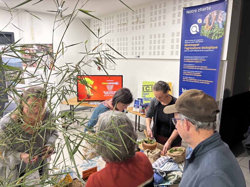 Samedi 8 novembre 2025, La Biocoop Sainte-Victoire, Artisans du Monde Aix, l’association de Sauvegarde du Patrimoine Roussetain (ASPR), Les Incroyables Comestibles Rousset, et Les Films du Delta, ont eu l’immense honneur de vous proposer une après-midi alliant découverte, réflexion et gourmandise, pour un seconde édition après un évènement très réussi en 2024 !
